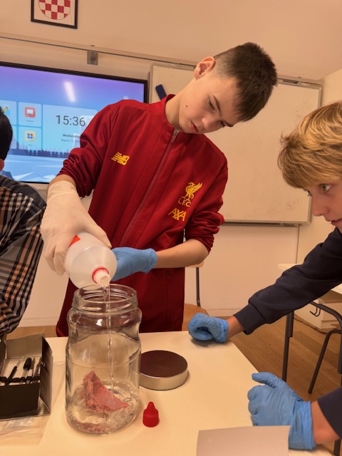 Neke važnije dijelove učenici su pohranili u staklene posude s alkoholom kako bi ih mogli koristiti i u budućoj nastavi te ih pokazati drugim učenicima.
